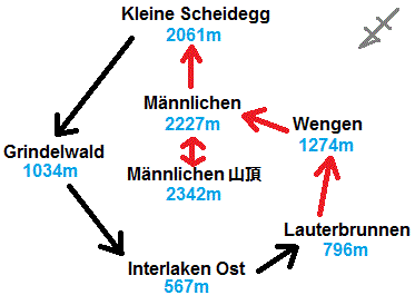 (75分) → クライネ・シャイデック[Kleine Scheidegg] →