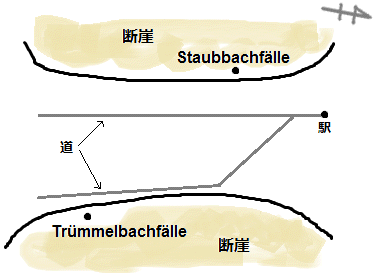 駅付近をふらふらしていたときは何とも思ってなかったけど、トゥリュンメルバッハの滝まで歩いてみて思った。 両側の断崖絶壁からの圧迫感がすごすぎる。