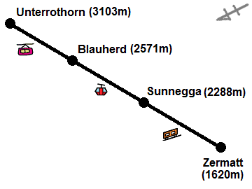 ツェルマットから3方面のどこに行こうか散々迷ったあげく、スネガ、ロートホルンへ向かうことにした。