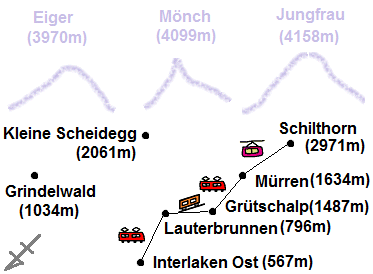 | 8/15(水) | ユングフラウ地方(メンリッヒェン⑥、クライネ・シャイデック、ラウターブルンネン) | インターラーケン |