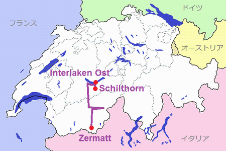 | 8/14(火) | ユングフラウ地方(ミューレン、シルトホルン⑤) | インターラーケン④ |