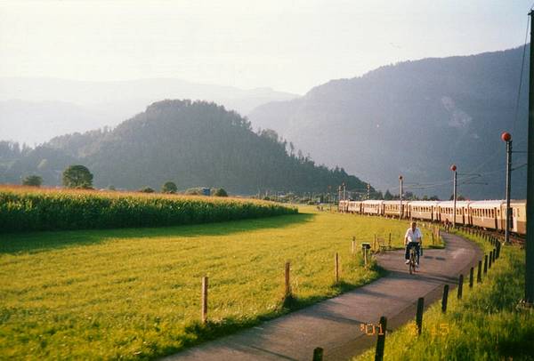 山の谷間を縫うように進むので景色は単調。車内アナウンスがフランス語優先からドイツ語優先に変わったのが印象的だった。