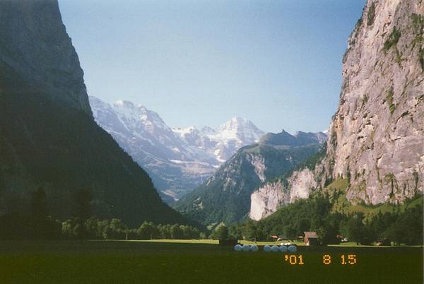 ラウターブルンネンの両側は断崖、それと平行するようにまっすぐな道が2本あるだけ。 建物もほとんどなく、迷いようがない。が・・・なかなか着かない。