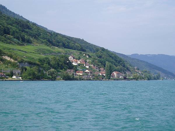 船の運航表では立ち寄る予定になっていた小さな船着き場2か所をすっ飛ばし!?、もうすぐヌーシャテルに到着。 ⇒旅行中のできごと「運航表無視!?」