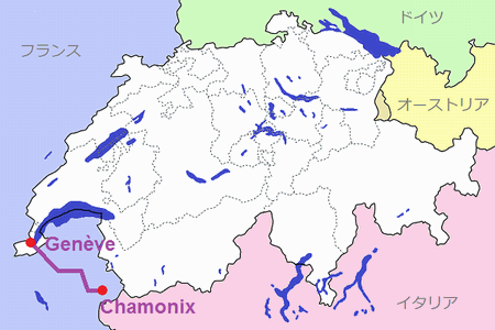 バスは1日に3本のみでしばらく来ないので電車で行くことにする。とはいえ、電車も日に7本のみ。 追記:現在は途中のアンヌマス[Annemasse]からジュネーブ間は廃線?らしいので電車では行けない。 その代わりに送迎バスが便利⇒旅行中のできごと「シャモニーへのアクセス」