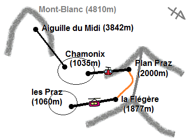 ロープウェイでシャモニーの隣町レ・プラへ降り、バスでシャモニーに戻る。