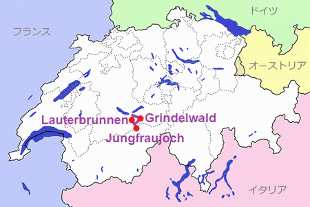 | 8/7(月) | ユングフラウ地方(ユングフラウヨッホ⑤、グリンデルワルト⑥からハイキング) | ラウターブルンネン |