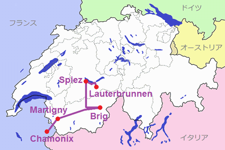 (5h25)(ブリーク[Brig]、マルティニ[Martigny]) → シャモニー[Chamonix]