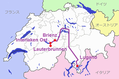 | 8/6(日) | ユングフラウ地方(ブリエンツ③、ブリエンツ湖遊覧船、ラウターブルンネン④) | ラウターブルンネン |
