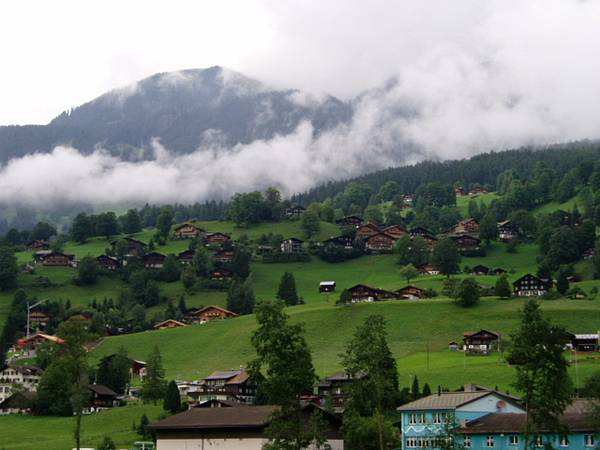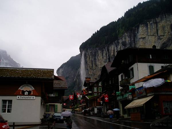 この天気ではハイキングは無理そう。ラウターブルンネンの街を散策するが時間を持て余す。