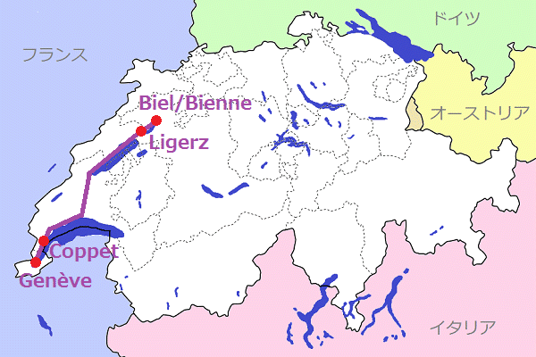 | 8/13(水) | スイス西部(プレル、ビール湖遊覧船、コペ、ジュネーブ⑨) | ジュネーブ |