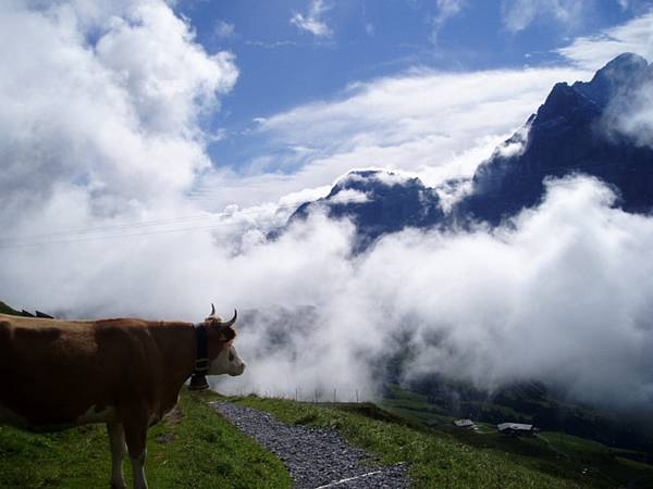 朝早い上、曇っていて寒い。アイガー[Eiger]も雲に隠れてしまっている(T0T)
