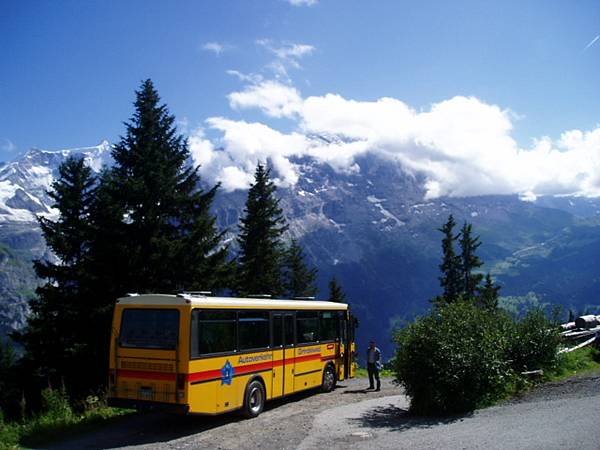 ラウターブルンネンからロープウェイでグリュチュアルプ。更に登山列車に乗り換えてミューレンへ。 そしてミューレン駅から徒歩10分の所にあるケーブルカーでアルメントフーベルへ。