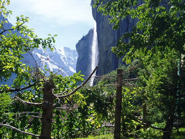森の中の暗い山道をひたすら下るのみで、膝への負担が大きく景色も全く見えない。 早足で下っても1時間15分。ラウターブルンネンに着くと足がガクガク。