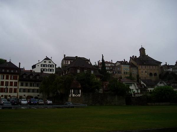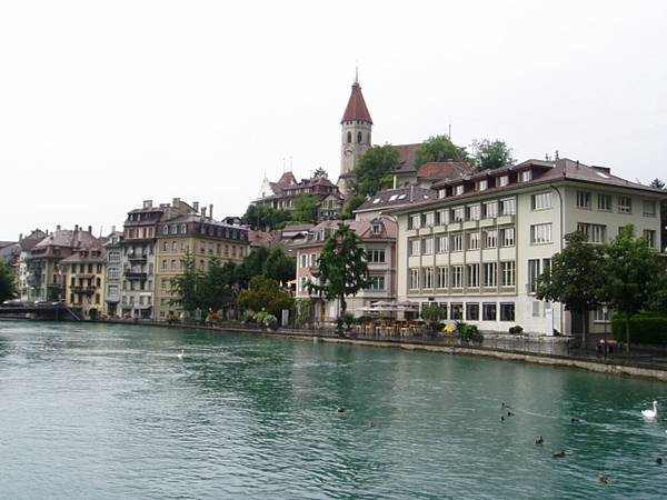 午前中の快晴から一転、とうとう雨が降り出した(T0T)それでも街をひとまわり。 正面の塔は2003年に行ったトゥーン城[Schloss Thun]。今回は遠くから見るだけ。