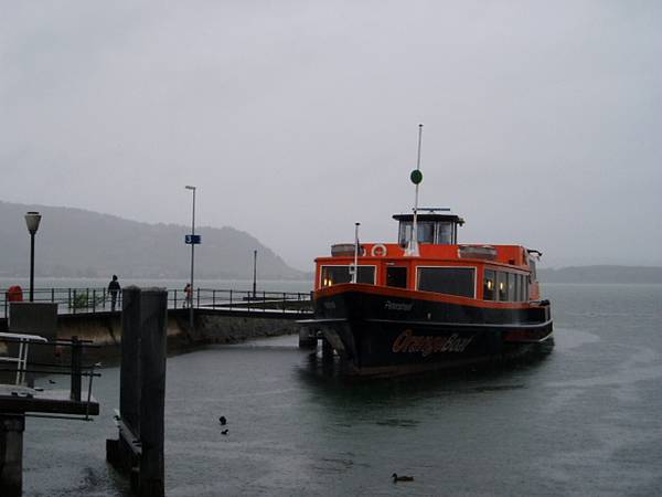 回復しない天候にめげずムルテンへ行き、遊覧船に乗ることにした。駅から船乗り場までは約1km。降り続く大雨でまたずぶぬれ。