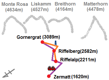 (3h30) → リッフェルアルプ[Riffelalp] →