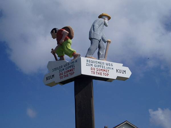 リギ山頂への標識(若者コースと老人コース)