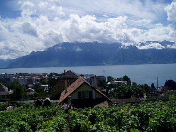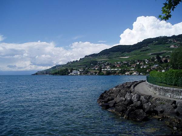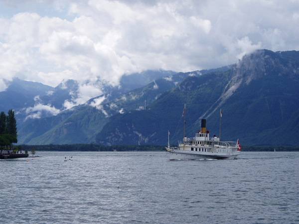 例によってレマン湖に近づくにつれて天気が回復。 雨がやんでいるのでモントルーで下車して船に乗る。駅から船着き場まではまあまあ近い。