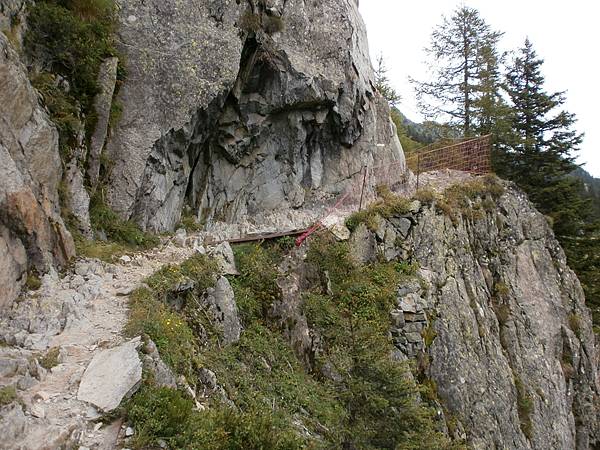 かなり慎重に歩いてやっと乗り場にたどり着いたものの、この電車、普段でも1日に10本ほどしか運行されないのに、 この日は雨のため本数が間引かれ、そこに大勢の人が群がっている。 とてもじゃないけど乗る気になれず、予定変更。コル・ドゥ・ヴォザに向けて歩く。