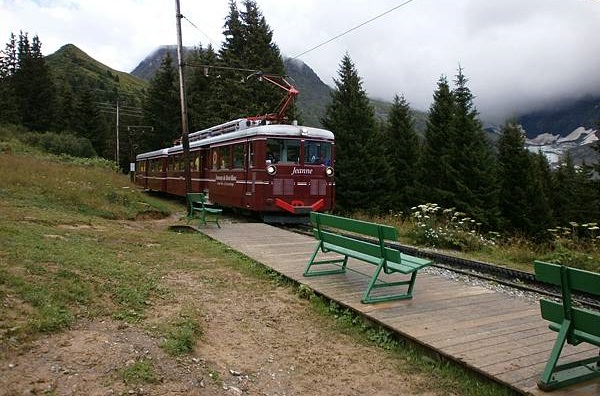 ベルヴュ(1800m)にて ニ・デーグル[Nid d'Aigle]行きのトラムウェイ