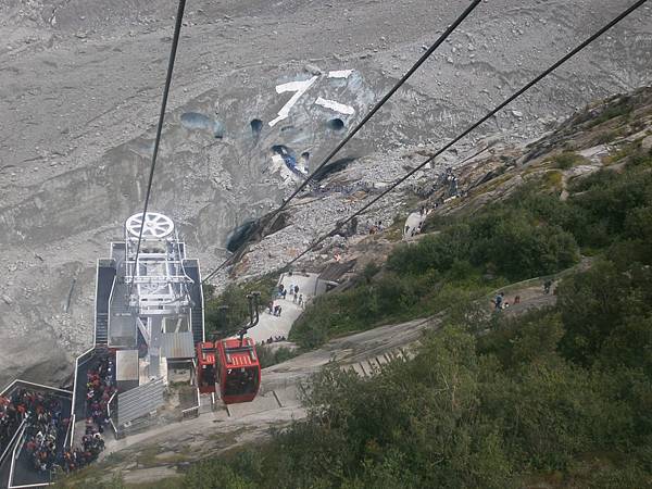 チェアリフトで1425mのところまで上りビューポイントへ。でもボソン氷河は雲の中でよく見えない。 ここから下るハイキングコースがあるが、森の中を下る感じに見えたので却下し再びチェアリフトで下る。