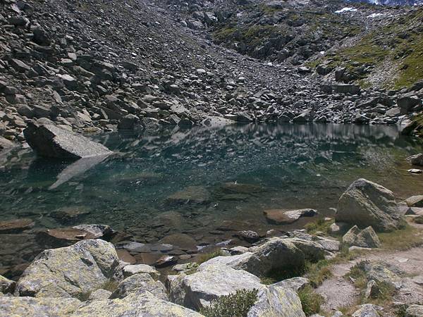 ロープウェイ乗り継ぎ地のプラン・ドゥ・レギュィーユで少し散策。15分程のラック・ブルーへ行ってみることにした。