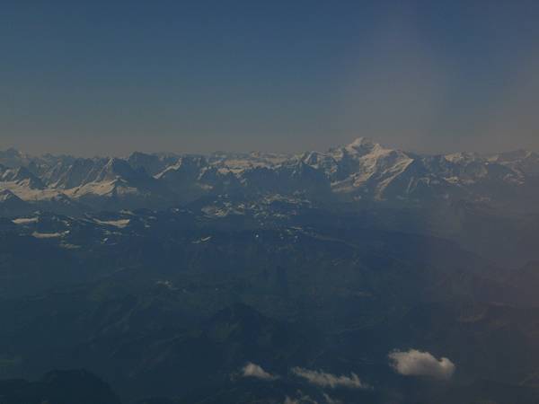チューリヒ行きの機内からモンブランらしき山々が見えた。